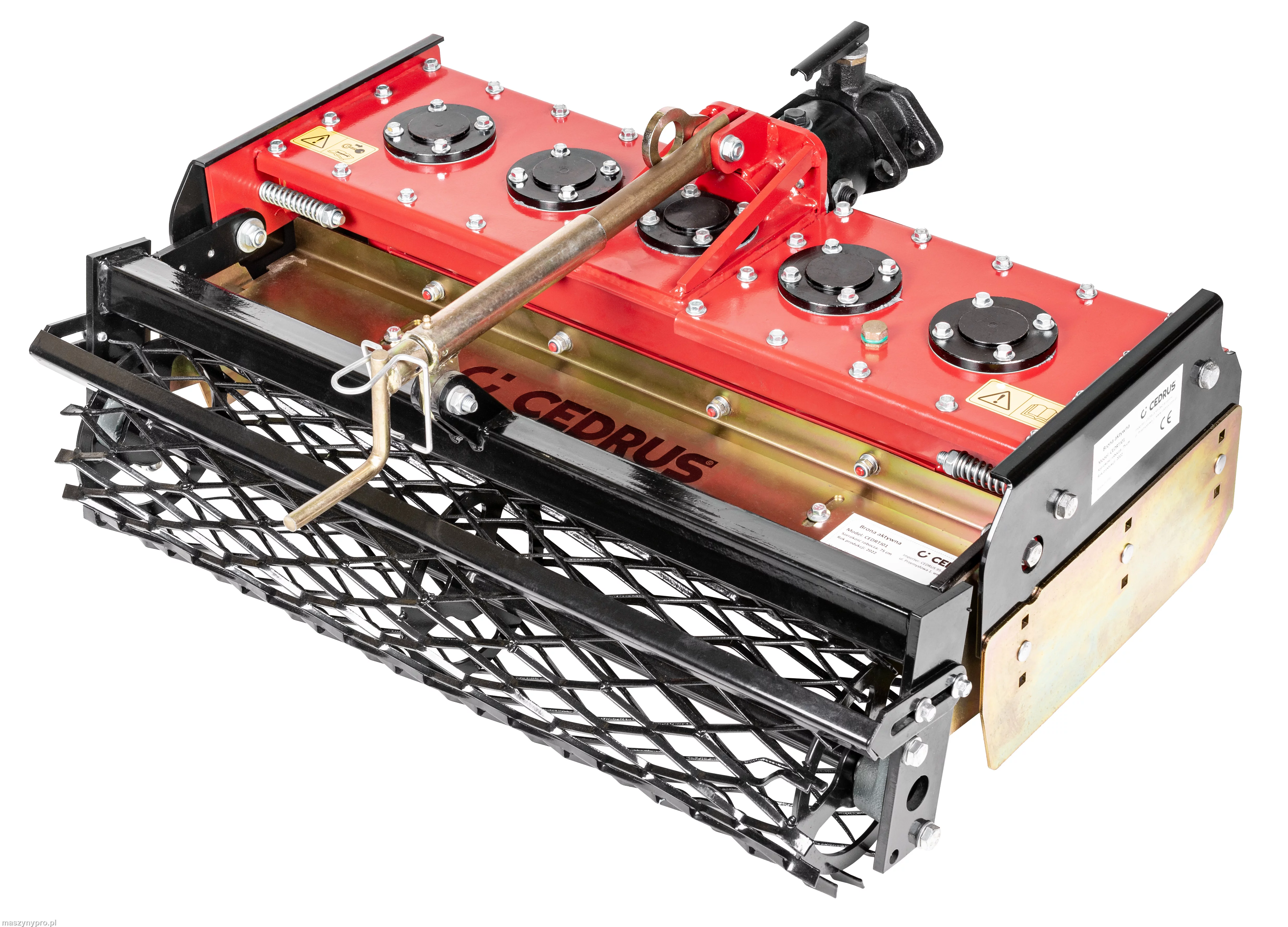 Brona aktywna Cedrus jest napędzana za pomocą wałka odbioru mocy (WOM), co zapewnia stabilne przeniesienie napędu oraz wysoką efektywność działania. Przystawka została zaprojektowana do współpracy z jednostkami Cedrus TJ01 oraz TJ02, gwarantując łatwy montaż i pełną kompatybilność.